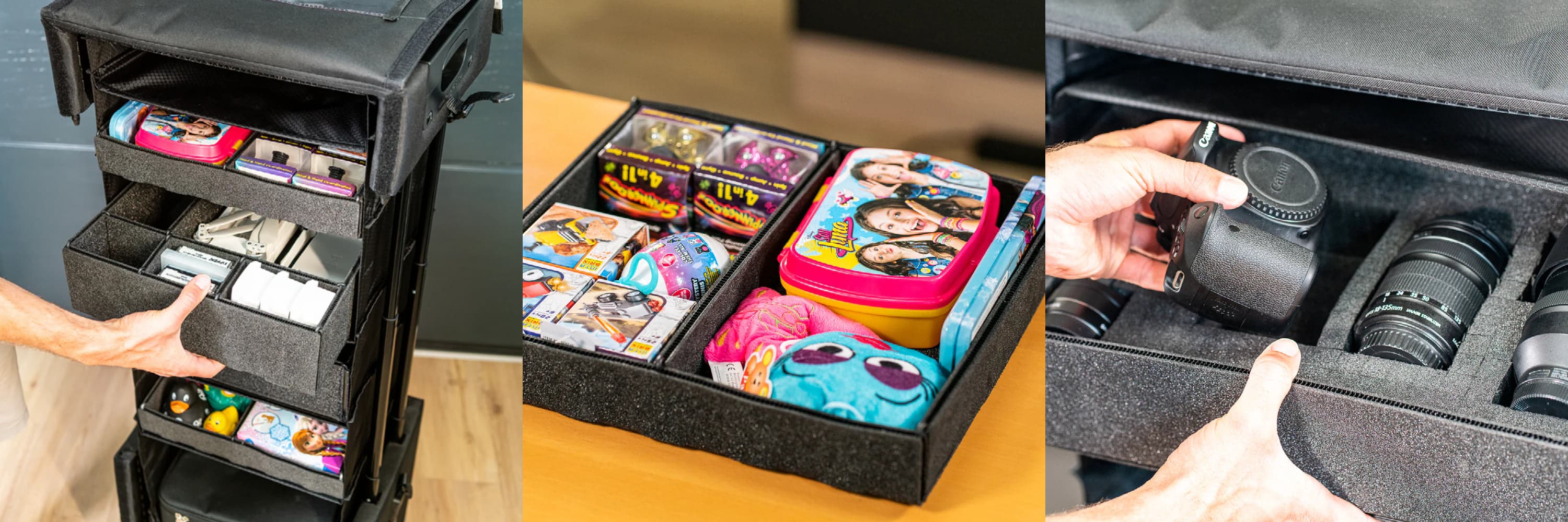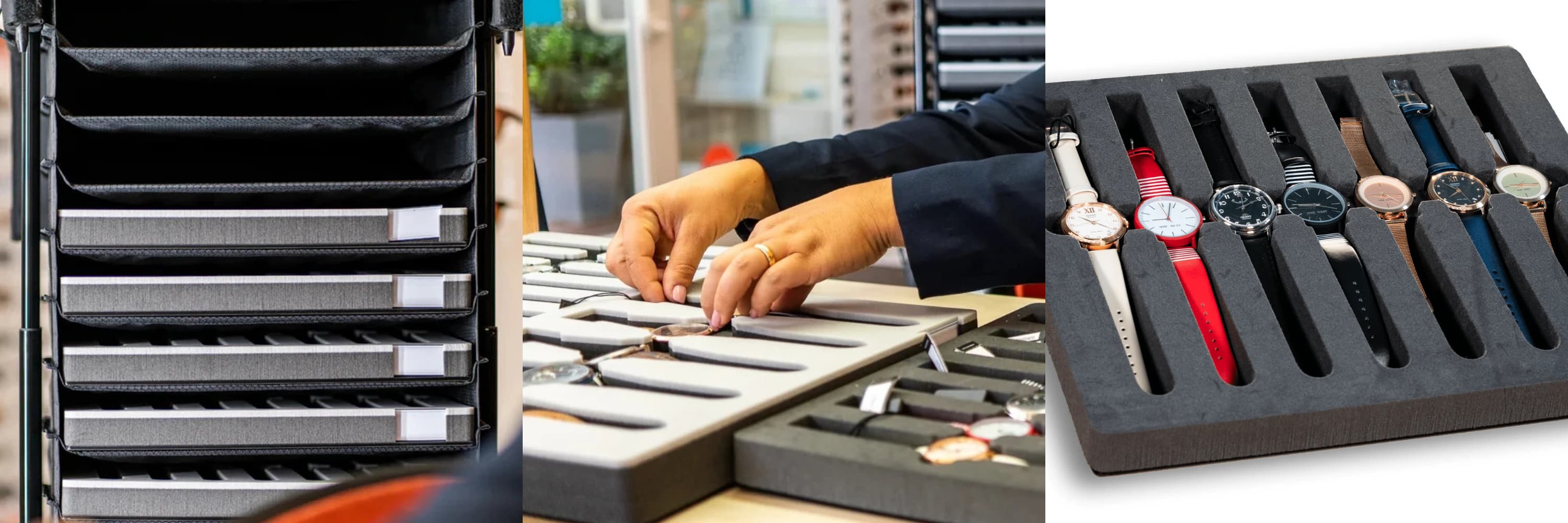 Our patented sample cases and collection cases with pull-up technology offer perfect organization for glasses, medical technology, watches, cameras and much more.